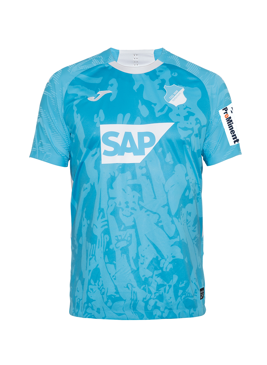 White details on the sides, at the front collar and in the neck area complete the modern look. All Joma branding and the entire print appear in white. The TSG crest is designed tone on tone in blue and white rounding off the appearance in a stylish and unified way.